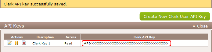 Check the "Orders/Tickets Read" checkbox, enter the description for this key (e.g. "Clerk Key 1") and click the "Save" button: