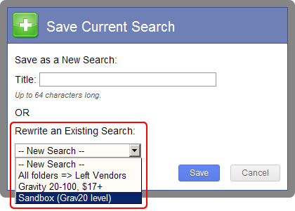 2. Expand the Searches and press the 'Save the Current Search' button.